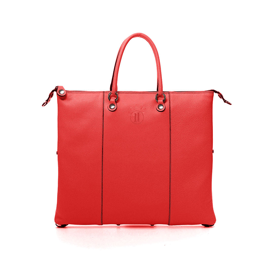 Large Italian Idea 5 bags in 1! Thanks to a play of snap buttons, it transforms from a flat bag to a tote, from a doctor bag to a satchel and then becomes a backpack too !!! The model features a main zip closure, two shoulder straps, one for crossbody use, and two for the backpack, an internal cotton lining with open and zipped internal pockets, a rigid base to help maintain the shape of the bag... and a big leather heart stitched into the lining that says "Italian Idea - Made in Italy".